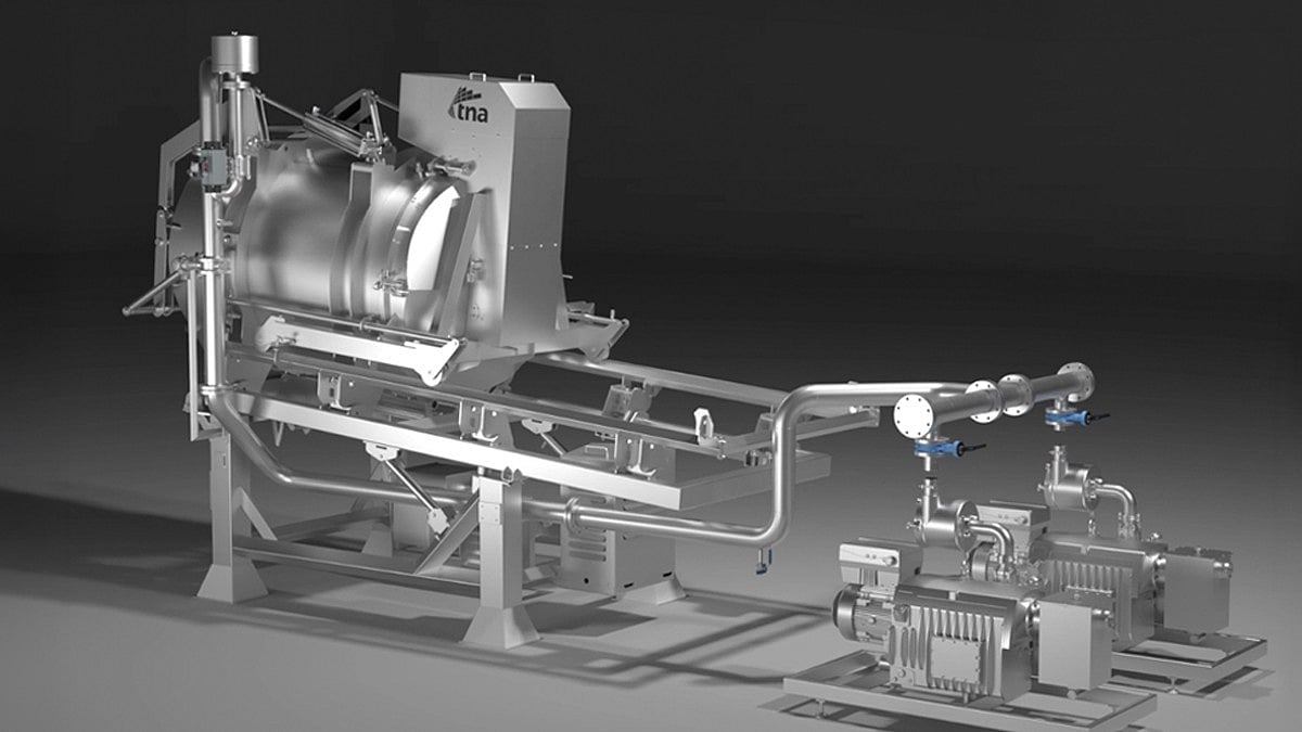 Unlike conventional heated centrifuge systems, the tna vacuum de-oiler operates at ambient temperature, using vacuum-driven technology to gently remove oil without further browning or additional acrylamide formation, as can occur in technologies that require chip reheating after frying.