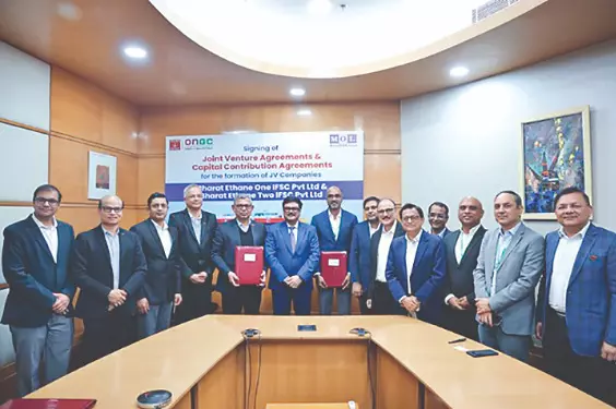 Oil and Natural Gas Corporation Ltd (ONGC), in a statement, said it has signed joint venture and capital contribution agreements with Mitsui OSK Lines Ltd (MOL) to invest in Bharat Ethane One IFSC Pvt Ltd and Bharat Ethane Two IFSC Pvt Ltd, both registered in GIFT City, Gandhinagar.