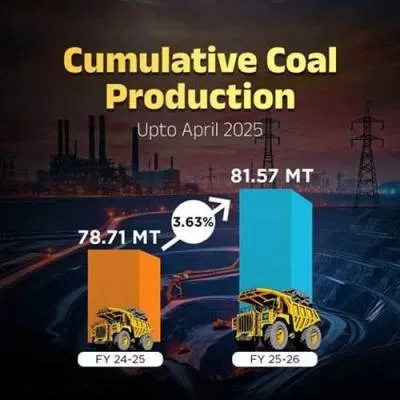 Mumbai, May 2 -- India's coal production and dispatch witnessed steady growth in April 2025, compared to the same period last year. This reflects the continued efforts of the Ministry of Coal and its subsidiaries to ensure consistent supply and operational stability in the sector.