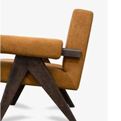 Maanavi Homes presents the Riley Chair, a perfect blend of modern aesthetics and timeless comfort. Expertly handcrafted and designed to be a sophisticated yet inviting addition to any space, this chair features a bold, contemporary silhouette with plush, generously cushioned armrests and seat, ensuring maximum comfort. Upholstered in a rich, earthy fabric, the chair's tactile appeal is matched by its sturdy wooden frame, finished in a deep tone that adds a striking contrast.