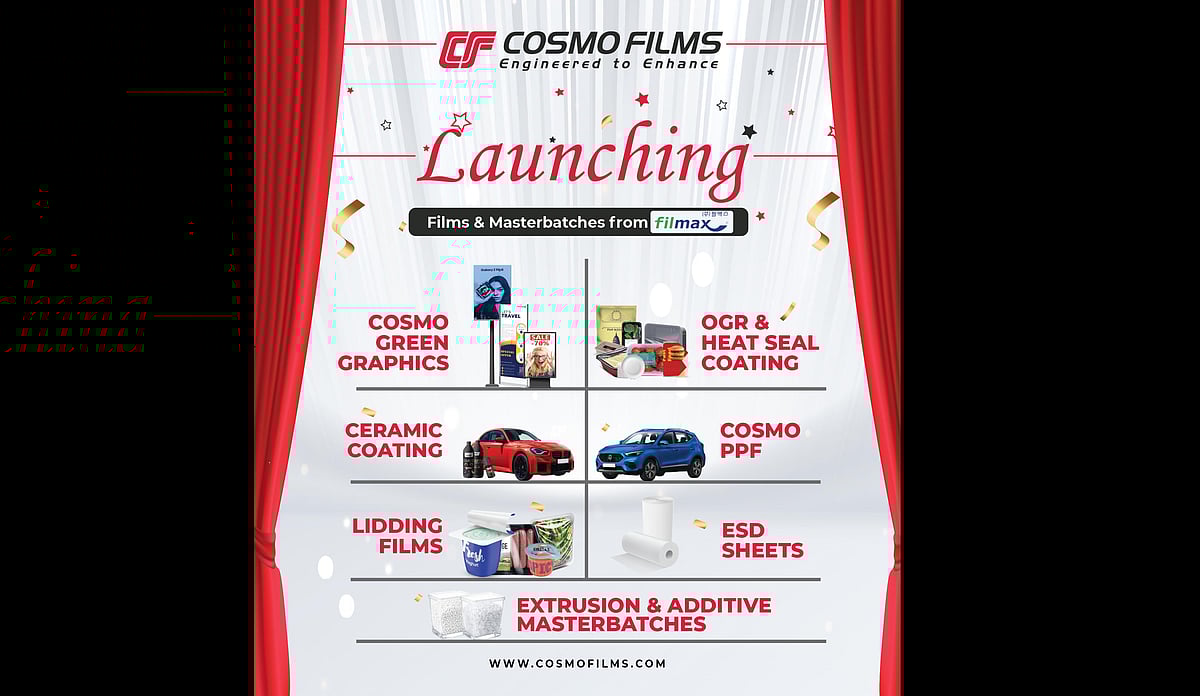 Cosmo Films will showcase its comprehensive portfolio of specialty films, including Cosmo Green Graphics PVC-free, sustainable graphic films for signage and display applicationsalong with lidding films for dairy, ready-to-eat and fresh food packaging, and advanced retort and heat-seal coated films designed for high-temperature and high-barrier food applications. Meanwhile, Cosmo Speciality Chemicals will present its expanding portfolio of extrusion and additive masterbatches, OGR (oil and grease resistant) coatings, and heat-seal coatings, developed to enhance barrier performance, sealing efficiency and end-use functionality across flexible packaging, lamination and converting applications. There are several other products that will be launched at the show including black & matte PPF, Ceramic Coatings, ESD sheets etc.