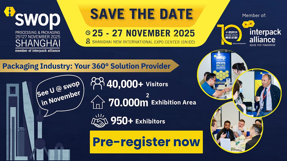 As a member of the interpack alliance, swop deeply explores cutting-edge fields such as artificial intelligence, intelligent / automated / digital packaging, sustainable / personalized / lightweight packaging, processing and packaging machinery, innovative materials and products, components, printed labels, and packaging design. With a scale of over 70,000 square meters, swop 2025 will present innovative products and technologies from approximately 950+ global leading enterprises in a one-stop platform. It is expected to bring together over 40,000 professional visitors from home and abroad, jointly driving the packaging industry toward an efficient, green, and intelligent future!