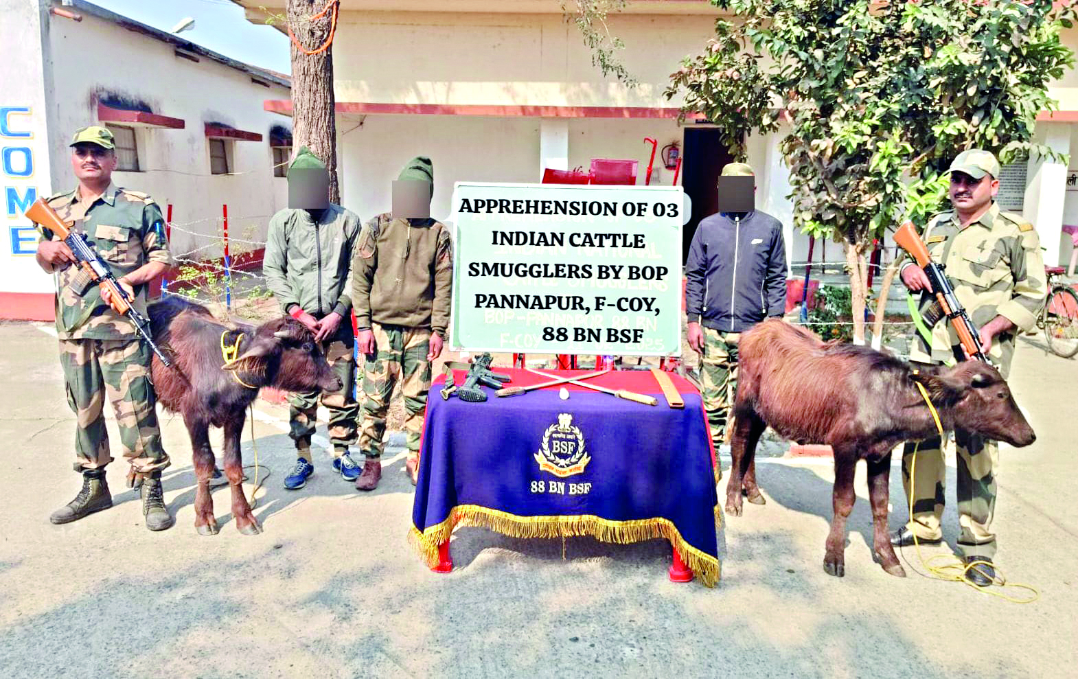 The smugglers, armed with two swords, a knife and a fake plastic gun, aimed to smuggle cattle into Bangladesh. However, their suspicious movements were swiftly detected by vigilant BSF jawans, who intercepted and apprehended them before they could execute their plan. Two buffaloes were also recovered from their possession.