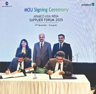 New Delhi, Nov. 21 -- Engineers India Ltd (EIL) has inked an MoU with Aramco Asia India Pvt Ltd (AAI) to explore the opportunity of close cooperation in respect of commercial feasibility and business potential of setting up a branch office as per range of services provided by EIL. The MoU was signed by Atul Gupta, Director (Commercial), EIL and Jamal Al Enazy, Director of Aramco Asia Procurement & Supply Chain Management in presence of C&MD, EIL - Vartika Shukla, Vice President of Saudi Aramco Procurement Department, Khalid Al Hajri and MD of AAI, Abdulrahman Y Althukair.