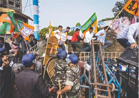 Kolkata, Dec. 24 -- A scuffle broke out between police and the BJP workers on Wednesday on Howrah Bridge after the saffron party workers tried to put up a blockade as a part of their rally, protesting against the murder of Dipu Das in Bangladesh.