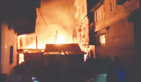 Alipurduar, Feb. 20 -- A massive fire broke out on Thursday night at Jharna Basti in Jaigaon, a border town in Alipurduar district, reducing six houses to ashes and partially damaging seven others, leaving several families homeless.