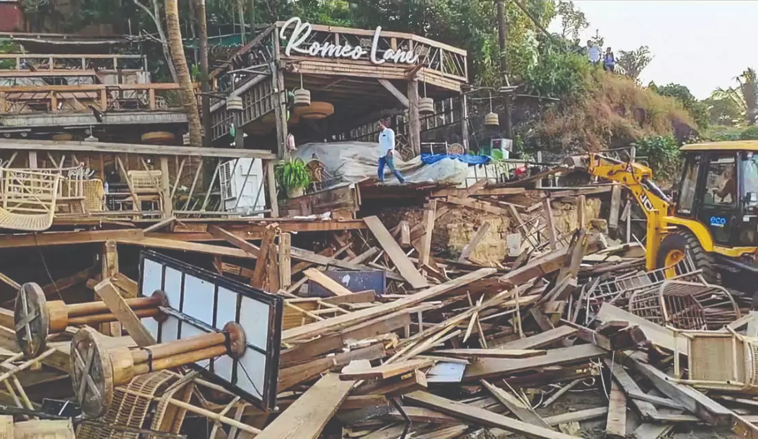 The Goa Tourism Department on Tuesday demolished Romeo Lane, a wooden shack at Vagator that officials said was illegally erected by the Luthras on government land. Acting on orders from Chief Minister Pramod Sawant, teams razed the 198 square metre structure within two hours using heavy machinery in the presence of police. A senior official noted that the administration had kept the equipment ready after receiving instructions. "This shack is illegally built on government land. It will be demolished on Tuesday," a CMO official had said earlier.
